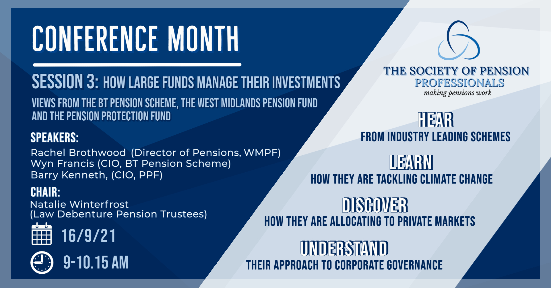 SPP Conference Month 2021: Session 3 – How Large Funds Manage their Investments – views from the BT Pension Scheme, the West Midlands Pension Fund and the Pension Protection Fund – 16/9/21