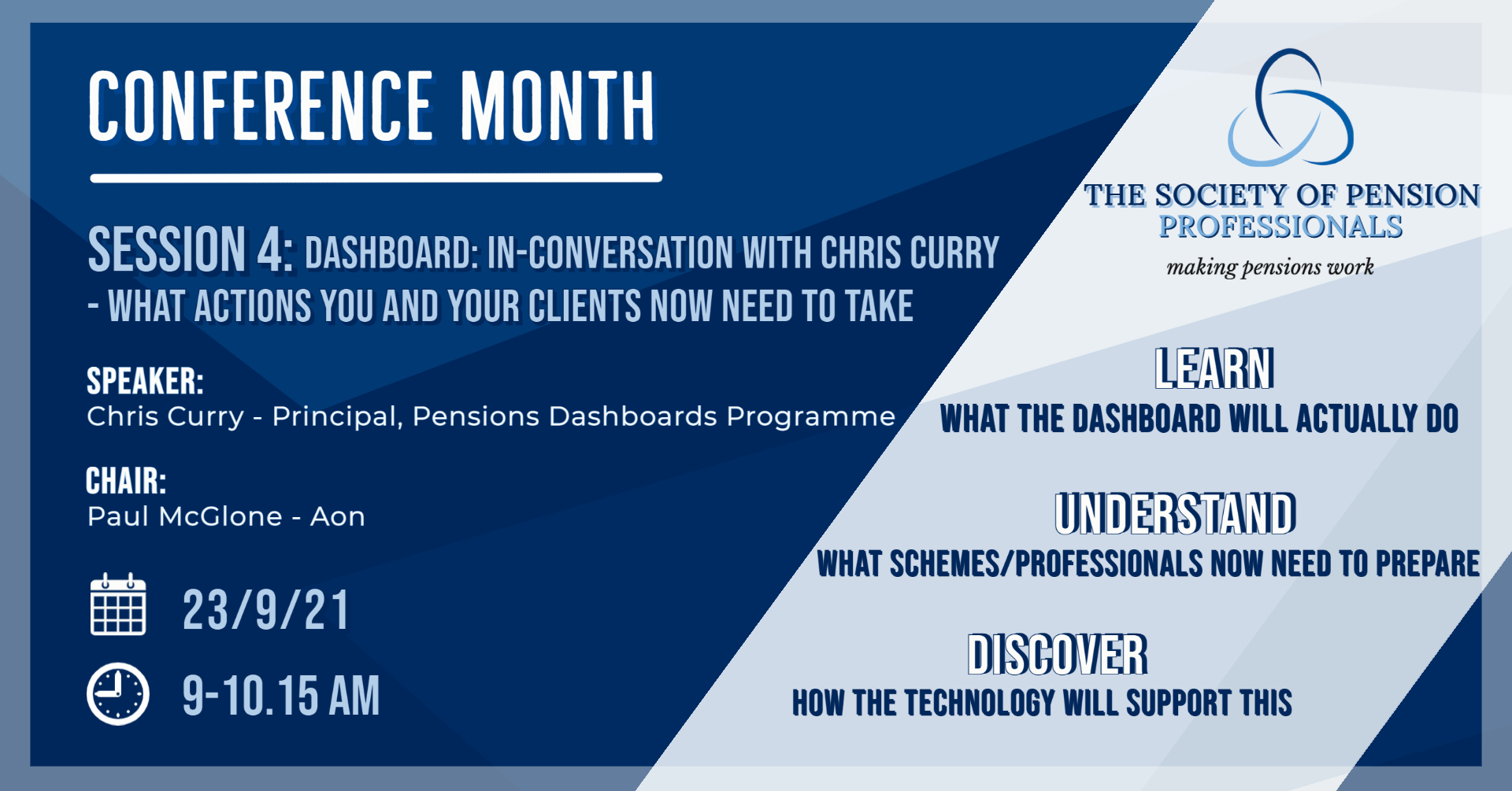 SPP Conference Month 2021: Session 4 – Dashboard, in-conversation with Chris Curry; What actions you and your clients now need to take’ – 23/9/21