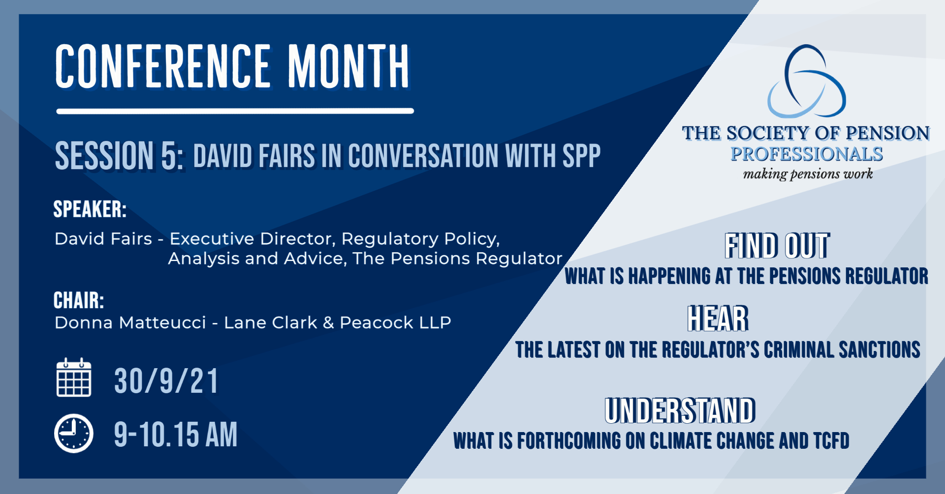 SPP Conference Month 2021 – Session 5 – David Fairs, Executive Director, Regulatory Policy, Analysis and Advice, the Pensions Regulator, in conversation with SPP – 30/9/21